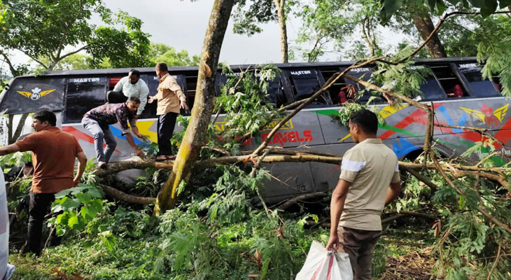 উপপরিদর্শক (এসআই) রোমান মোল্লা জানান, সাতক্ষীরা থেকে ছেড়ে আসা মাস্টার লাইনের একটি যাত্রীবাহী বাস ঢাকায় যাচ্ছিল। এ সময় বাসটি কাশিয়ানী উপজেলার পোনা এলাকায় পৌঁছালে চালক নিয়ন্ত্রণ হারিয়ে ফেললে সড়কের পাশে গাছের সাথে ধাক্কা লেগে খাদে পড়ে যায়। এতে ওই বাসের সামনের অংশ দুমড়ে মুচড়ে গেলে বাসে থাকা অন্তত ২০ যাত্রী আহত হন।