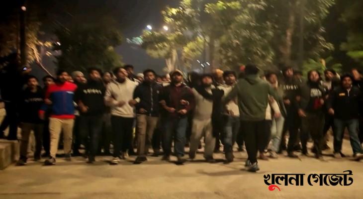 মঙ্গলবার (১৩ জানুয়ারি) রাত ১১টার দিকে হাদি চত্বর থেকে মিছিলটি শুরু হয়ে বীরশ্রেষ্ঠ রুহুল আমীন হল, খান বাহাদূর আহসানউল্লাহ হল, খান জাহান আলী হল হয়ে ভিসির বাসভবন প্রদক্ষিণ করে হাদি চত্বরে এসে অবস্থান করে। সেখানে প্রায় এক ঘণ্টা অবস্থান করে এবং সংক্ষিপ্ত প্রতিবাদ সমাবেশ করে শিক্ষার্থীরা দাবিদাওয়া তুলে ধরেন।
