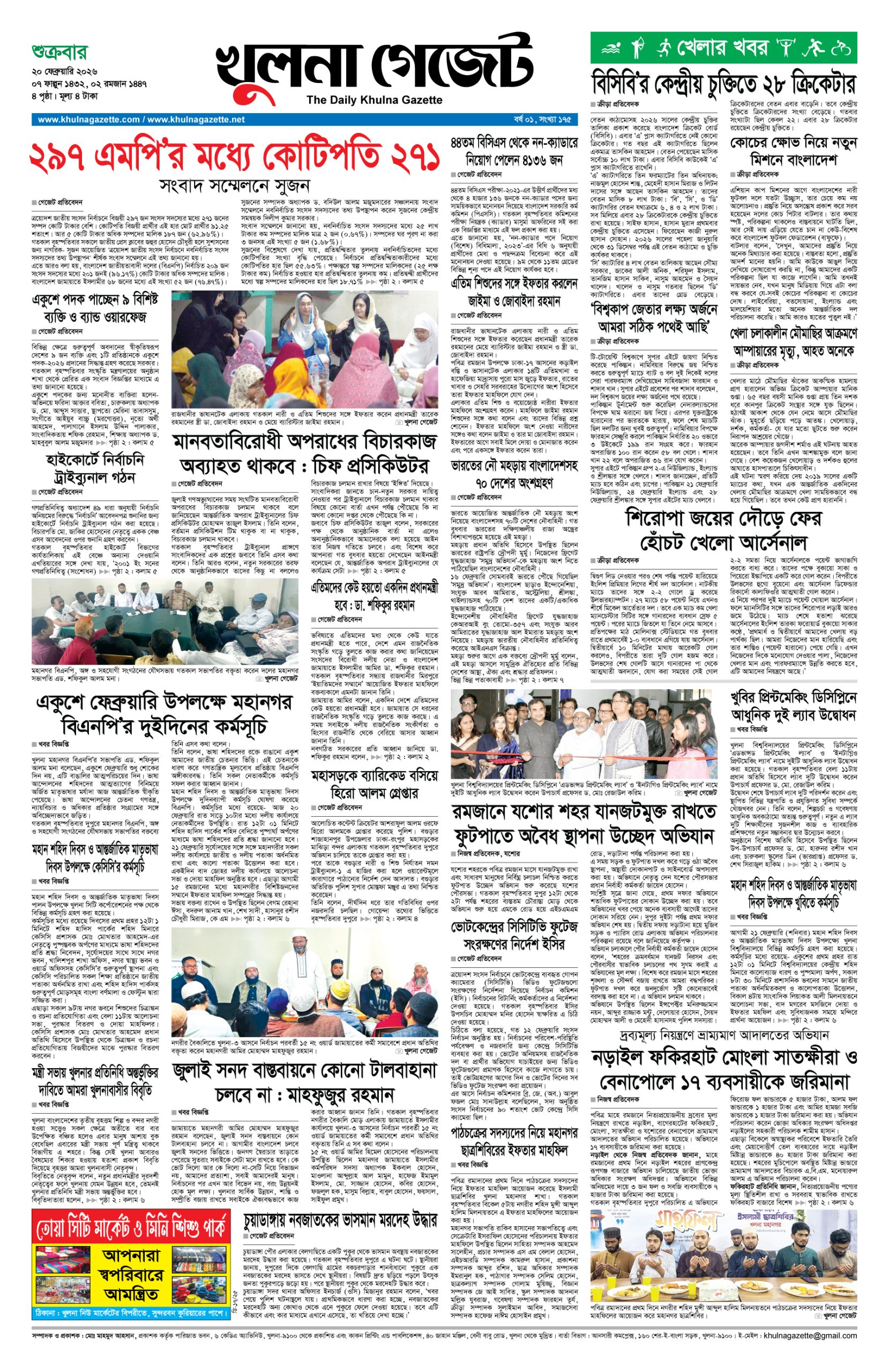 শুক্রবার । ২০শে ফেব্রুয়ারি, ২০২৬ । ৭ই ফাল্গুন, ১৪৩২