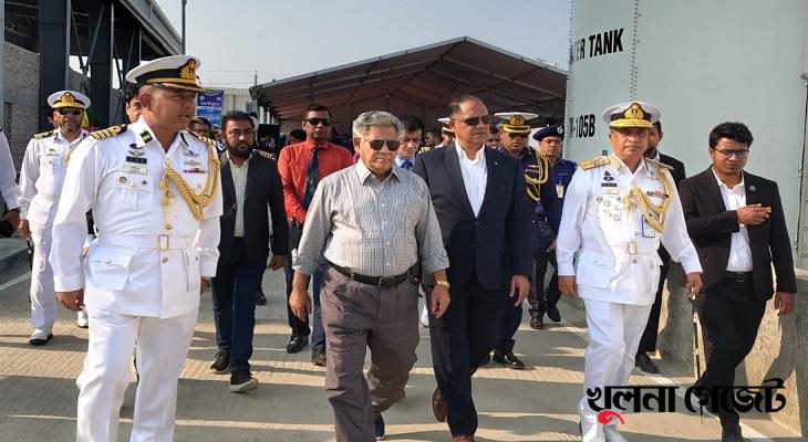 উদ্বোধন শেষে নৌ-পরিবহন এবং শ্রম ও কর্মসংস্থান মন্ত্রণালয়ের উপদেষ্টা ব্রিগেডিয়ার জেনারেল (অবঃ) ড. এম সাখাওয়াত হোসেন পোর্ট রিসিপশন ফ্যাসিলিটি (পিআরএফ) প্রকল্পটি ঘুরে দেখেন।