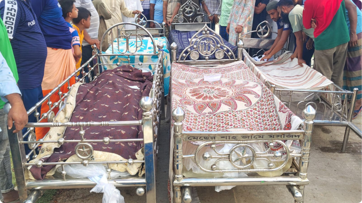 আব্দুর রাজ্জাকের পাঁচ ছেলে ও এক মেয়ে। দুর্ঘটনায় তাঁর দুই ছেলে, এক মেয়ে, এক পুত্রবধূ ও চার নাতি নিহত হয়েছেন। নিহত ব্যক্তিদের মরদেহ এখন বাড়িতে রাখা হয়েছে। স্বজনদের আহাজারিতে ভারী হয়ে উঠেছে পুরো এলাকা। জীবিত থাকা তিন ছেলে, তাঁদের মা ও অন্য স্বজনেরা শোকে স্তব্ধ হয়ে পড়েছেন।