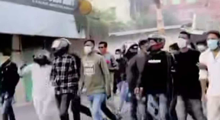 প্রত্যক্ষদর্শীরা জানিয়েছেন, মিছিলে ৩০ থেকে ৩৫ জন কিশোর-যুবক অংশ নেয়। মিছিলকারীদের অধিকাংশই মুখে মাস্ক ছিল। অনেকেই ছিলেন হেলমেট পরিহিত।
