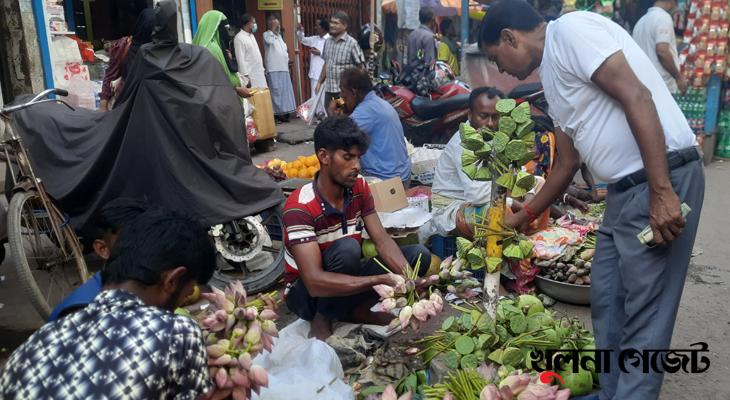 স্বপনের পাশে ফুল নিয়ে বসেছিলেন তেরখাদার শান্তি বিশ্বাস। তিনি বলেন, “ভোররাতে আমার স্বামী নদীতে পদ্ম ফুল তুলতে যান। সাধারণত সকাল ৮টা-৯টার মধ্যে তিনি ফিরে আসেন। তারপর সেই ফুলগুলো আমি নিজে বিক্রি করি। আবার অনেক সময় আমার স্বামীও বিক্রির কাজে সাহায্য করেন। দুর্গাপূজায় ১০৮ টি পদ্মফুল প্রয়োজন হয়। পূজোর সময়ে এই ফুলের কদর বেশি থাকে। তবে এ বছর তেমন বেচাকেনা হচ্ছে না। ১০০ পিস ফুল ২০০ থেকে ৩০০ টাকায় বিক্রি করি। ফুলের মান অনুযায়ী যার কাছে যেমন সুযোগ হয়, সেভাবেই বিক্রি করি।”