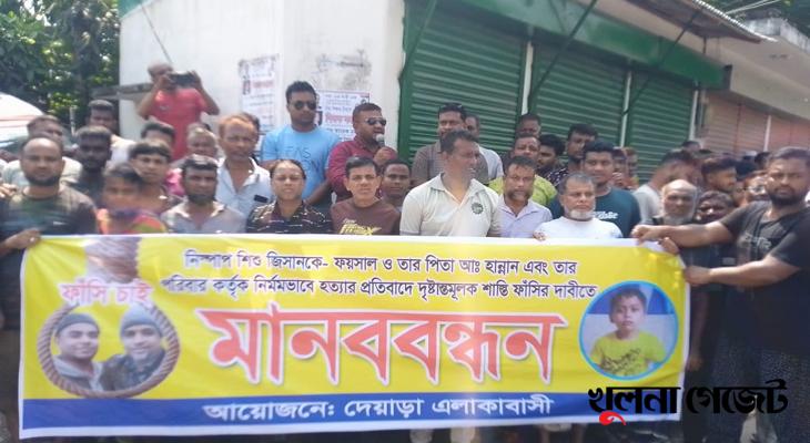 এদিকে শিশু জিসানকে নির্মমভাবে হত্যার প্রতিবাদে এবং হত্যাকারীদের দৃষ্টান্তমূলক শাস্তি এবং ফাঁসির দাবি জানিয়ে মানববন্ধন অনুষ্ঠিত হয়। দেয়াড়া এলাকাবাসী এ মানববন্ধনের আয়োজন করে।