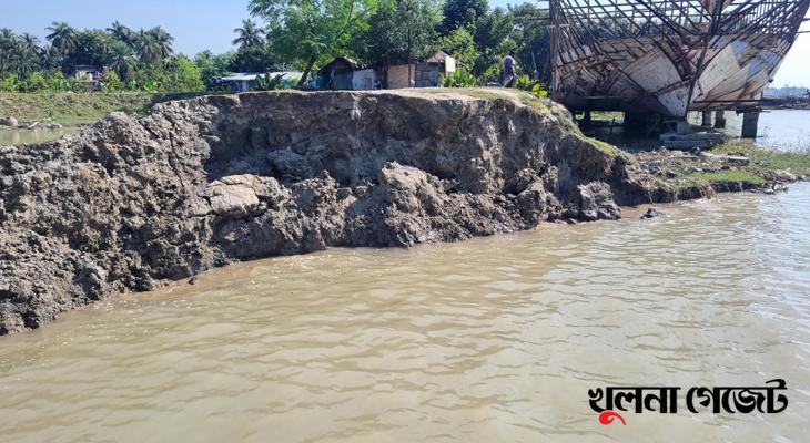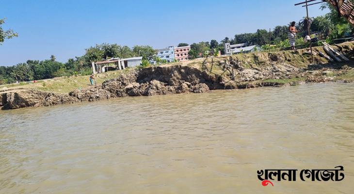 একসময় যেখানে ছিলো গ্রাম। বসবাস ছিলো ৪শ’ থেকে ৫শ’ পরিবারের। সেখানে বহমান ভৈরব নদ। ভিটেমাটি হারিয়ে ওই গ্রামের অসহায় পরিবারগুলির ঠিকানা এখন অন্যের জমিতে। এত ক্ষয়ক্ষতির পর নতুন করে ভাঙন দেখা দেওয়ায় আতঙ্কিত ভৈরব পাড়ে থাকা রূপসা উপজেলার তিন গ্রামের কয়েক হাজার মানুষ।