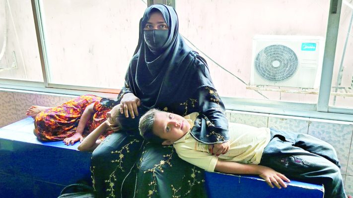 দুপুর ২ টা। খুলনা শিশু হাসপাতলের দ্বিতীয় তলায় মায়ের কোলের উপর মাথা রেখে বিশ্রাম নিচ্ছে দুই শিশু। আর দুই সন্তানের মাথায় হাত রেখে অপেক্ষার প্রহর গুণছে মা মুন্নী বেগম। গতকাল বুধবার সকালে খুলনা শিশু হাসপাতালে টায়ফয়েড আক্রান্ত ৮ বছরের মেয়ে সাবিহা ইসলামকে নিয়ে আসেন তিনি। সঙ্গে রয়েছে তার ছেলেও। বহির্বিভাগে ডাক্তার দেখানোর পর জরুরি ভিত্তিতে তার মেয়েকে ভর্তির জন্য বলা হয়েছে। দুই সন্তানকে নিয়ে হাসপাতালের দ্বিতীয় তলার সিঁড়ির বারান্দার অপেক্ষা করছেন ভর্তি করানোর জন্য। তবে দুপুর সোয়া ২টার দিকেও ভর্তি করাতে পারেননি অসুস্থ মেয়েকে।