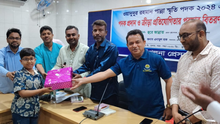 খুলনা প্রেসক্লাবের আয়োজনে ‘সাংবাদিক ওয়াদুদুর রহমান পান্না স্মৃতি পদক-২০২৪’ এর পদক প্রদান ও প্রেসক্লাবের অভ্যন্তরীণ ক্রীড়া প্রতিযোগিতার পুরস্কার বিতরণ অনুষ্ঠান বুধবার (১৫ এপ্রিল) সন্ধ্যায় ক্লাবের হুমায়ুন কবীর বালু মিলনায়তনে অনুষ্ঠিত হয়েছে।