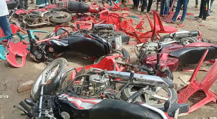 মঙ্গলবার (৪ নভেম্বর) দুপুরে মনোনয়নপ্রাপ্ত সাবেক এমপি আমজাদ হোসেন ও জেলা বিএনপির সভাপতি জাভেদ মাসুদ মিল্টন সমর্থকদের মধ্যে এ হামলা-পাল্টা হামলার ঘটনা ঘটে। বেলা সাড়ে ১১টার দিকে বাসস্ট্যান্ড এলাকায় আমজাদ হোসেনের ওপর হামলার অভিযোগ উঠেছে মিল্টন পক্ষের বিরুদ্ধে। পরে সংঘর্ষ ছড়িয়ে পড়ে বিএনপির দুই কার্যালয় ঘিরে। ইটপাটকেল নিক্ষেপ, অফিস ভাঙচুরের পাশাপাশি বেশ কয়েকটি মোটরসাইকেল ভেঙে ফেলা হয়। এ সময় দুই পক্ষ অফিসের ভেতরের আসবাবপত্র বের করে আগুন দেয়। এ ঘটনায় আহত হয়েছেন অন্তত ১০ জন নেতাকর্মী। ভাঙচুর করা হয়েছে অন্তত ১২টি মোটরসাইকেল।