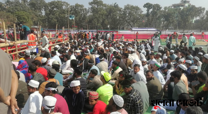 খুলনা নগরের সার্কিট হাউস মাঠে বাংলাদেশ জামায়াতে ইসলামীর প্রথম নির্বাচনী জনসভায় খণ্ড খণ্ড মিছিল নিয়ে যোগ দিতে শুরু করেছেন দলের নেতাকর্মীরা। মঙ্গলবার (২৭ জানুয়ারি) দুপুর ২টায় জনসভা শুরু হবে। এ জনসভায় প্রধান অতিথির বক্তব্য দেবেন দলের আমির ডা. শফিকুর রহমান।