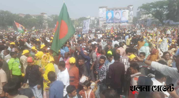 সকাল থেকে প্রভাতী স্কুল মাঠে নেতা-কর্মীরা মিছিল নিয়ে আসতে থাকেন। আগত নেতা-কর্মীরা ঢাকঢোল পিটিয়ে বাদ্যযন্ত্রের তালে তালে সহ নানা স্লোগান দিচ্ছেন। ইতিমধ্যে সভাস্থলে খুলনা মহানগর বিএনপির সাধারণ সম্পাদক শফিকুল ইসলাম তুহিনসহ অন্যান্য নেতৃবৃন্দ উপস্থিত হয়েছেন। বেলা সোয়া ১১ টার দিকে কোরআন তেলোয়াতের মাধ্যমে সভা শুরু হয়।