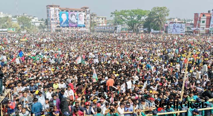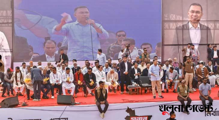 তারেক রহমান বলেন, আগামী ১২ তারিখের সাধারণ নির্বাচন উপলক্ষে আজ বিএনপি ও ধানের শীষের এই জনসভা অনুষ্ঠিত হচ্ছে। বিগত ১৫–১৬ বছরে বিএনপি বহু আন্দোলন ও সংগ্রাম করেছে। এই সময়ে দলের অসংখ্য নেতাকর্মী গুম, খুন ও হত্যার শিকার হয়েছেন। হাজার হাজার, লাখো নেতাকর্মী—বিএনপি সহ বিভিন্ন রাজনৈতিক দলের কর্মীরা—গায়েবি মামলা, নির্যাতন ও নিপীড়নের শিকার হয়েছেন।