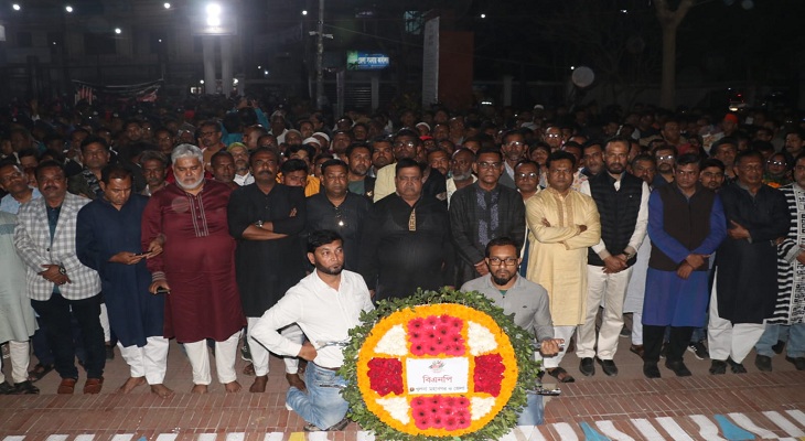 মহানগর বিএনপির সভাপতি এড. শফিকুল আলম মনা, জেলা বিএনপির আহ্বায়ক মনিরুজ্জামান মন্টু, মহানগর বিএনপির সাধারণ সম্পাদক শফিকুল আলম তুহিন এবং জেলা বিএনপির সদস্য সচিব মনিরুল হাসান বাপ্পীর নেতৃত্বে শ্রদ্ধা নিবেদন করা হয়।